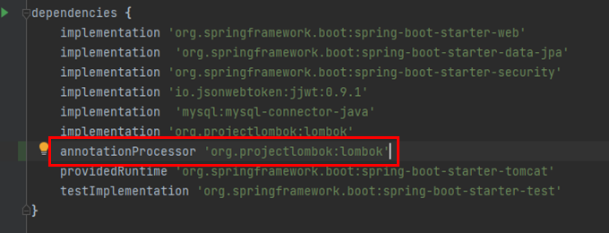 annotationProcessor 'org.projectlombok:lombok'