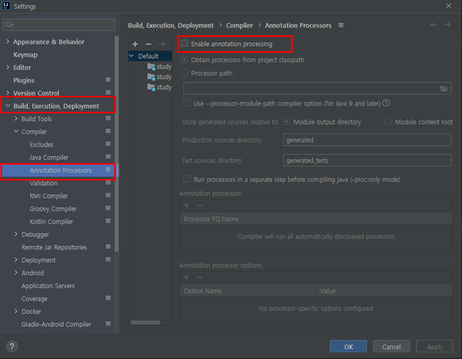 - File > Settings메뉴에서 아래의 설정을 찾아 체크한 후 OK버튼을 클릭한다.