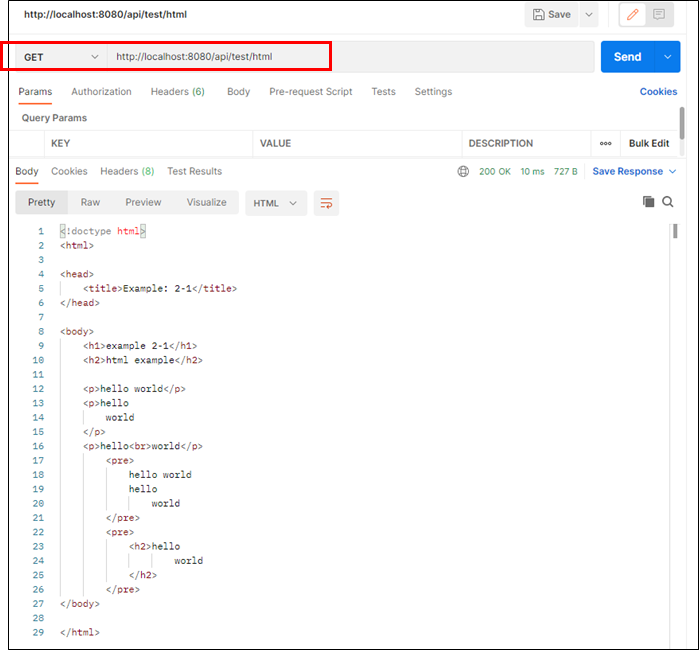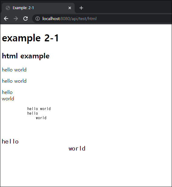- Spring 컨트롤러에서 HTML텍스트를 브라우저에서 바로 렌더링되도록 리턴한다.