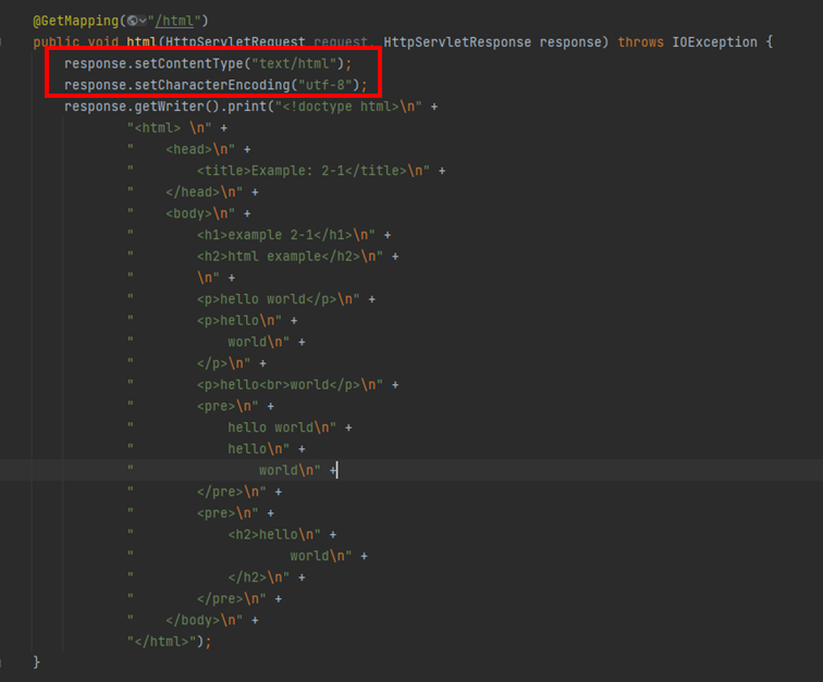 response.getWriter().print("<!doctype html>\n" +