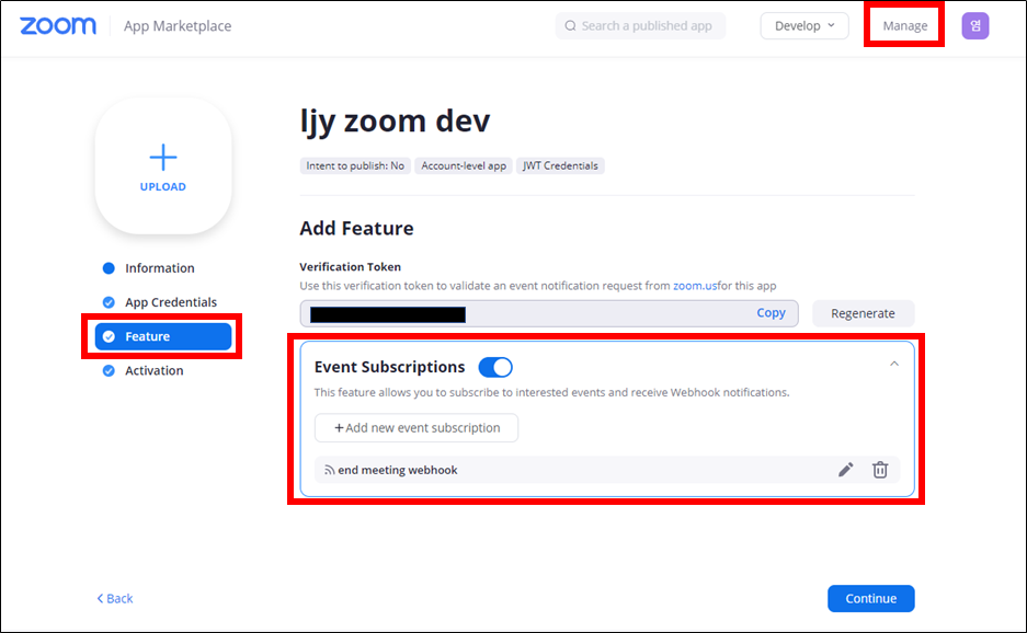줌에서 제공하는 webhook을 이용해 설정할 것이다.