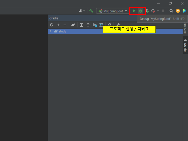 Intellij 의 스프링부트 기본 기능을 사용하여 방금 생성한 프로젝트를 실행한다.