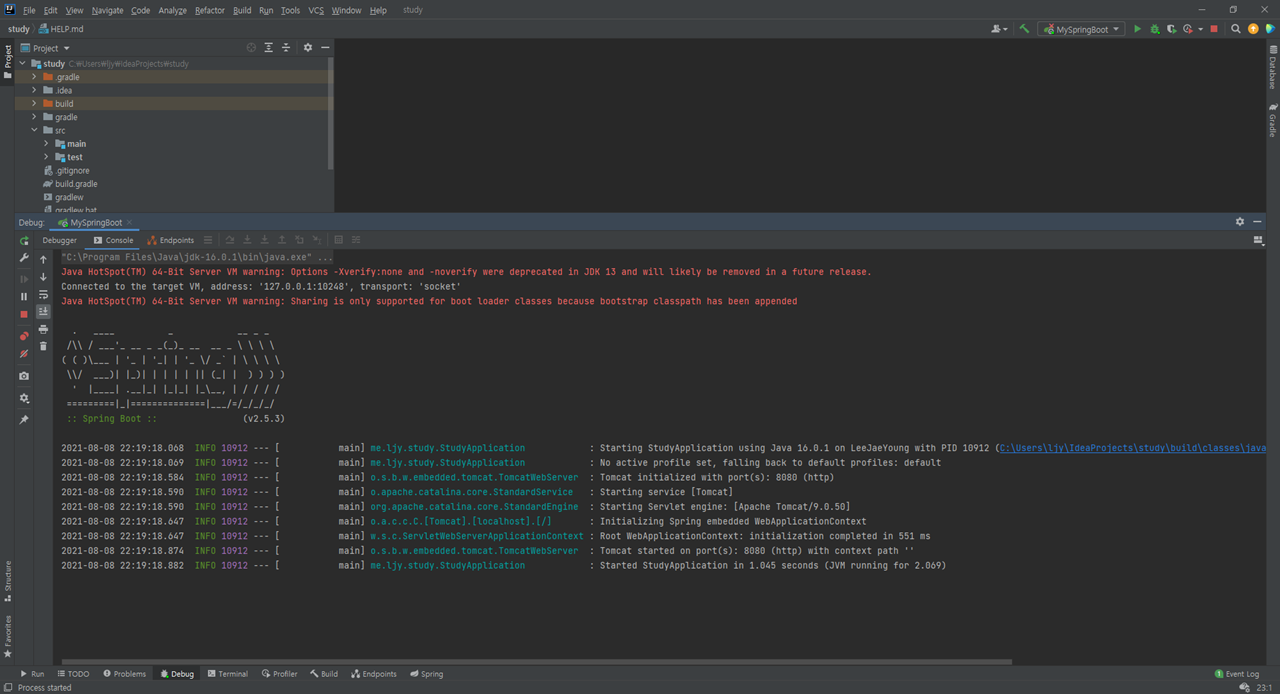 - Intellij는 ultimate, 2021.1.3 버전이다.