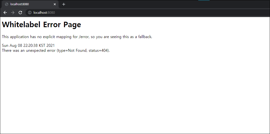 위와 같은 SpringBoot 에러 페이지가 나타난다면 성공한 것이다.