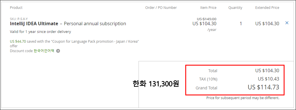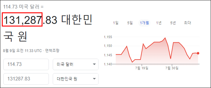 한화로 약 131,300원이다.