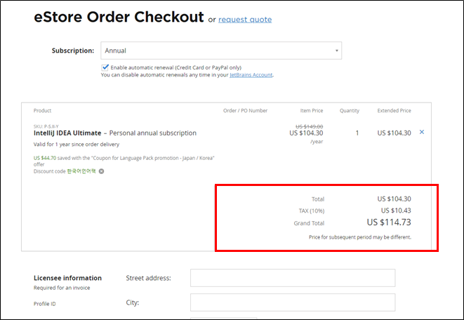 Intellij는 1년 정기 구독을 하면 fallback lisence를 제공해
